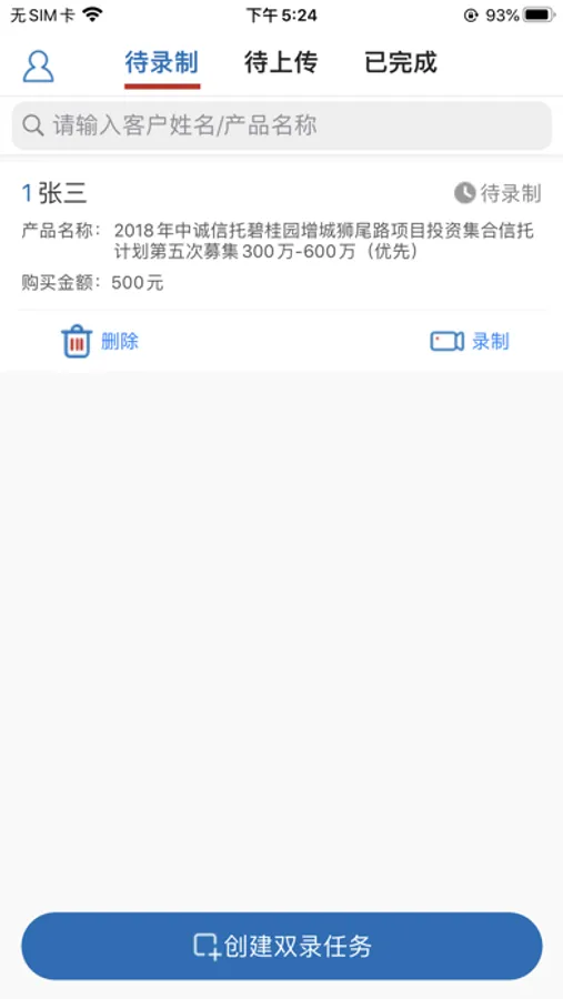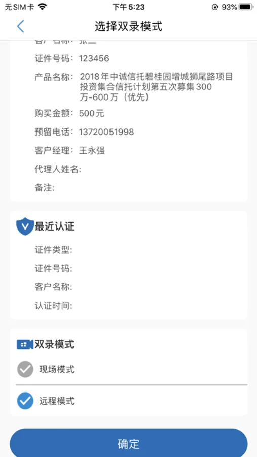 双录APP,为客户经理在信托产品展业过程中提供客户身份认证及现场/远程视频双录,维护消费者合法权益,保障信托产品销售过程合法合规。
