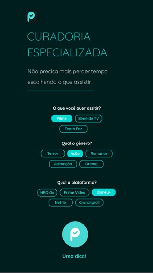 Com três passos simples, te indicamos o que assistir e onde assistir. Não precisa mais perder horas escolhendo o que assistir na Netflix ou em todos os outros serviços de streaming. Dicas exclusivas de Filmes, Séries de TV e Cinema baseadas nas suas preferências somadas a uma curadoria exclusiva do nosso time editorial super qualificado.