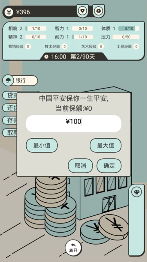 聪明求生记是一款模拟现在年轻人在城市生存类的游戏,玩家要立足城市寻求发展,必须完成工作升迁,租房买房,克服重重压力,最后拥有豪车别墅,成为亿万富豪的励志故事。你的属性会随着各种事件而变化,属性也会影响到你的各种人生选择,来挑战下你的生存智慧!