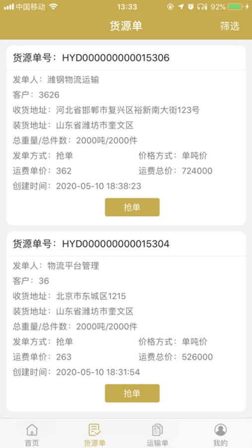 潍钢物流app,专业服务于货运司机、物流公司等各类承运商,汇聚海量货运需求,货主通过潍钢物流平台实时发布运输订单,承运商可通过抢单模式承运订单,抢单成功后可通过调度给自营司机承运,基于内置的全球定位系统,可实时监控物流运输情况,为货主提供高效、安全的物流运输服务,但继续使用在后台运行的全球定位系统,可以大大降低电池寿命。