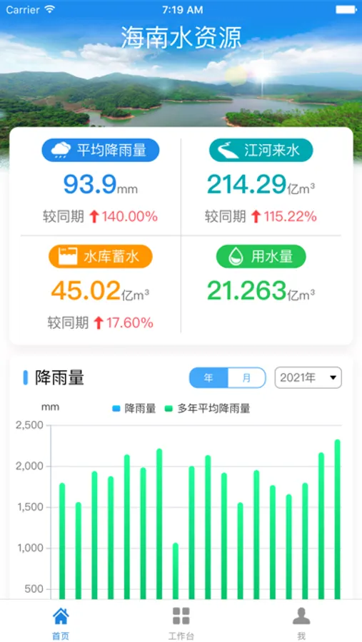 水掌云能够为水务工作人员提供海南省水资源的查询展示服务,实现了通过手机移动端查询海南全省的水资源蓄水动态、用水动态,以及重点水库的调水方案信息,水源地监测信息和水源地三条红线等信息。