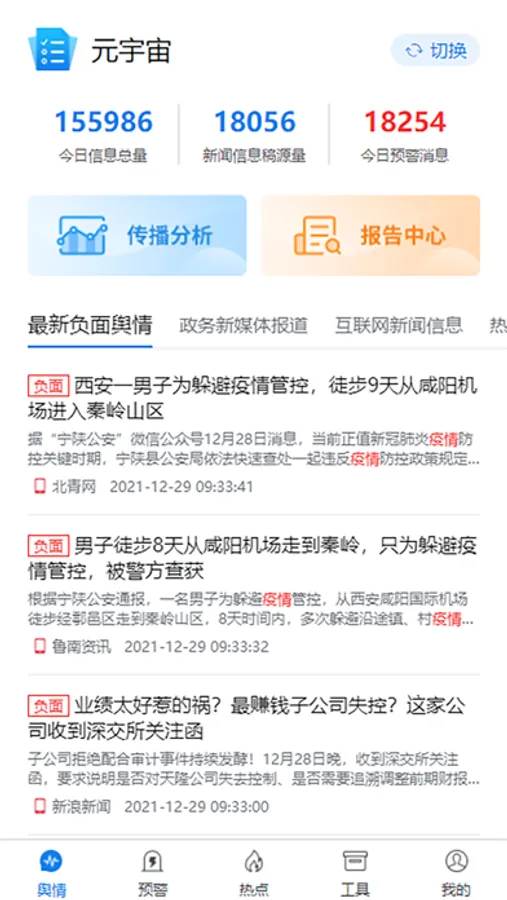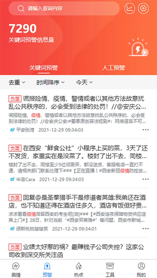 清博舆情以全网数据分析、智能语义分析为技术支撑,全方位整合传统媒体、门户网站、微信、微博、论坛等舆情信息,可实时追踪热门舆情信息。向用户提供实时舆情分析、阶段性舆情研判、专题性舆情分析、定制化舆情会商等服务,为企业品牌评估、战略部署提供有力数据支持。