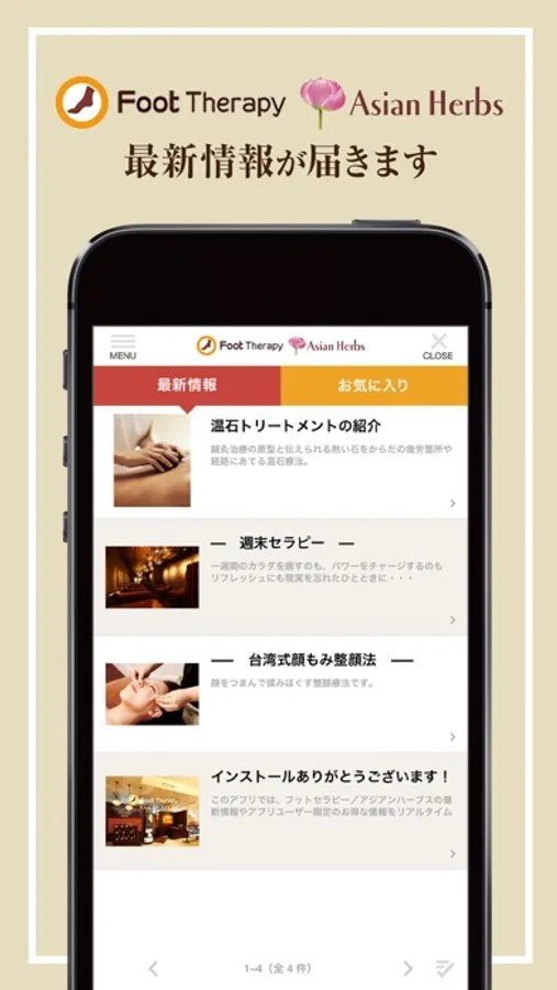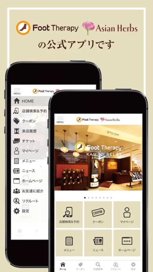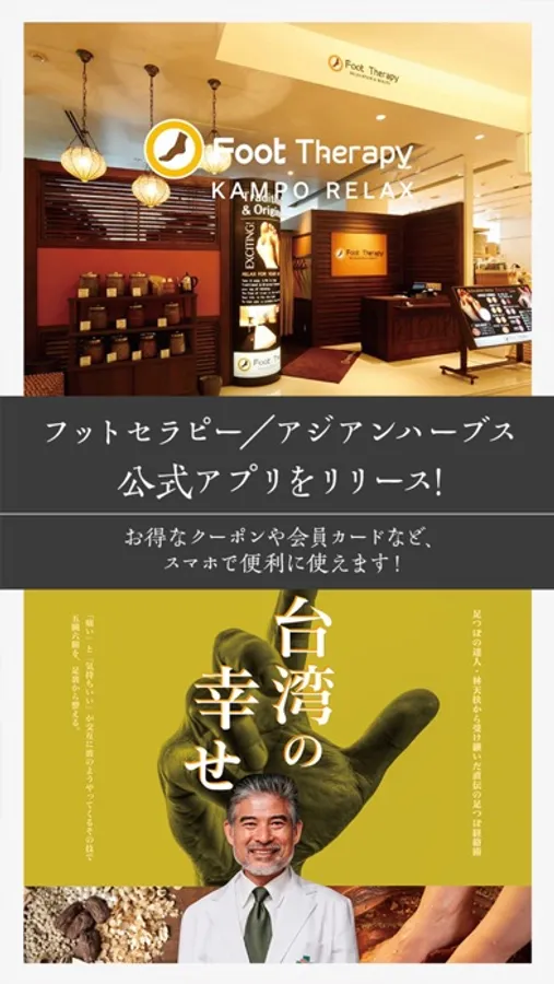フットセラピ―(Foot Therapy)/アジアンハーブス(Asian Herbs)の公式アプリへようこそ。