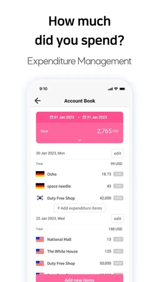▶ Account Book : You can also add items that have been spent in local currency on layovers. If you enter in local currency, the exchange rate will be applied automatically.