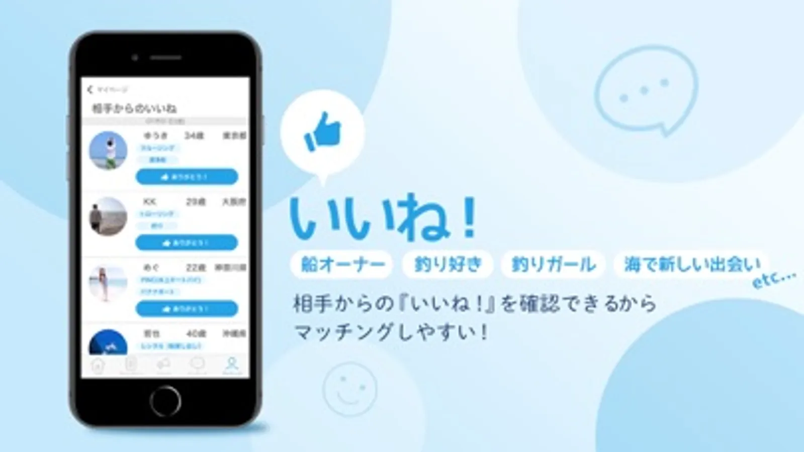 - 同じ釣り好きな人と釣りに行きたい時に、アプリで探して、やりとりする