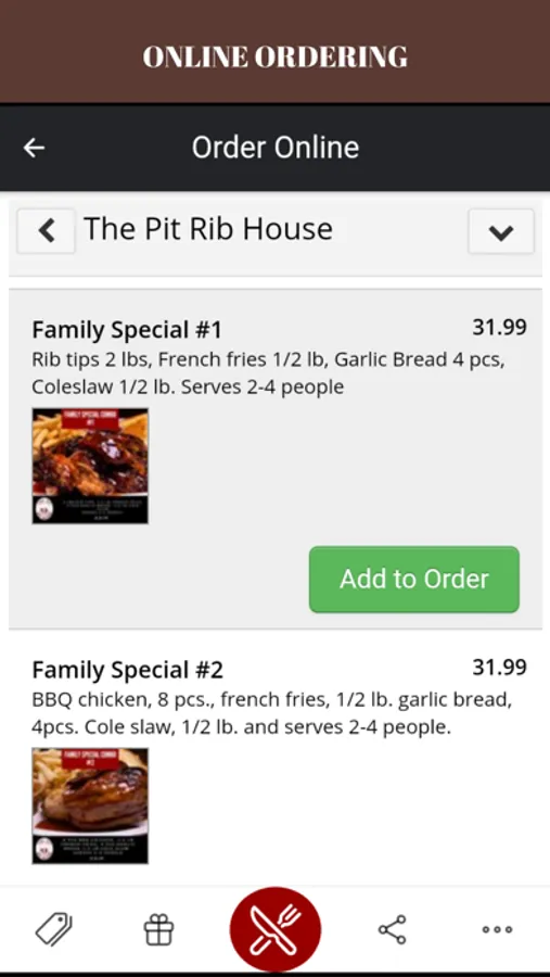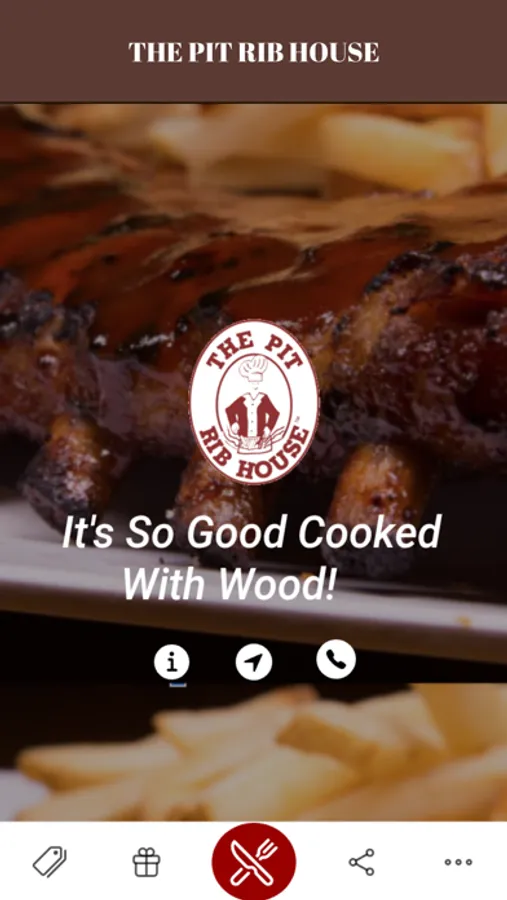 The Pit Rib House mobile app with online ordering, loyalty rewards, specials and deals and social sharing.