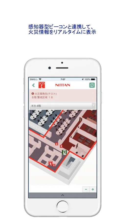 「B Catch Now」はiPhoneとビーコンを使って、 オリジナルのマップ上で所在地と防災位置情報を確認できる法人様向けのクラウドサービスです。短期間で導入可能で、オフィスや作業現場の所在地を見える化することで業務の効率化に貢献しています。また、有事の際に防災位置情報を表示することで、安心安全を提供します。