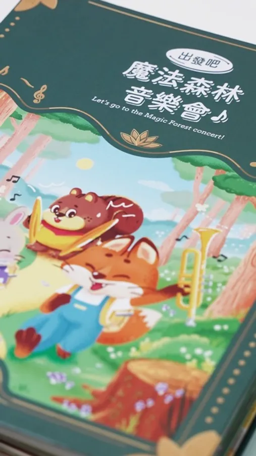 《出發吧,魔法森林音樂會!》是一本結合 3D 多媒體的 AR 互動立體書。透過 App 與書裡面的立體樂器紙卡,讓小朋友既能聽故事,又可實際觸摸,還能搭配劇情嘗試演奏不同樂器!