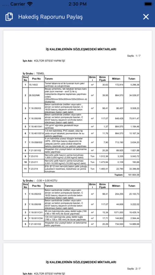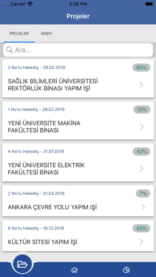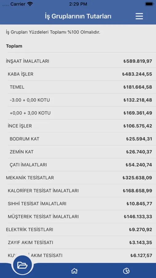 - Hakediş ilerleme yüzdelerini takip edebilirsiniz.