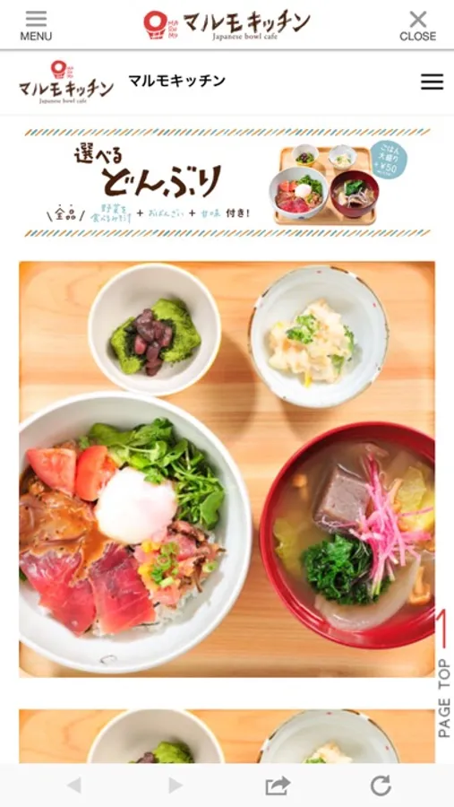 「マルモキッチン」は新鮮な海の幸やお肉をメインに野菜をたっぷり使ったバラエティ豊かなどんぶりが15種類以上!