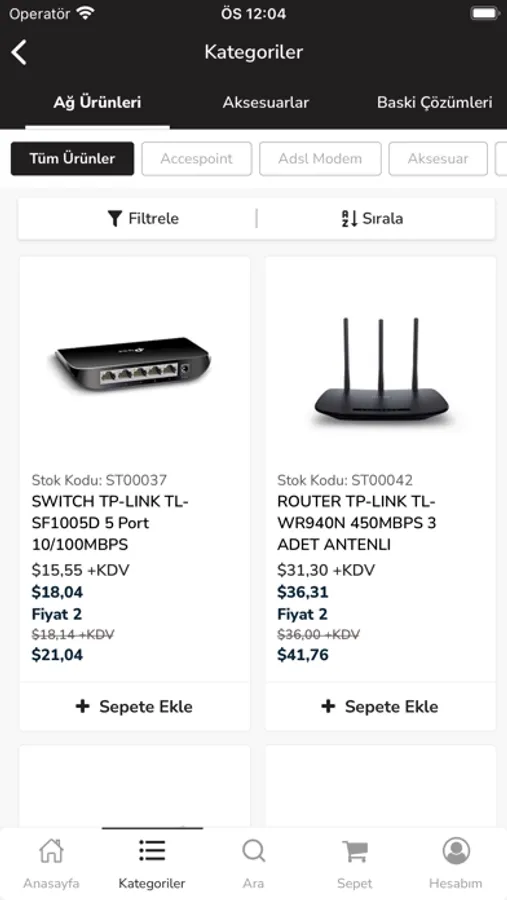 * Ürün kategorilerinde filtreleme yapabilirsiniz