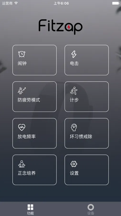 Fitzap APP 通过蓝牙连接手机,用户可以通过app操控手环释放安全电流,通过对人体安全的电击刺激辅助用户戒掉坏习惯,养成自律的生活习惯。