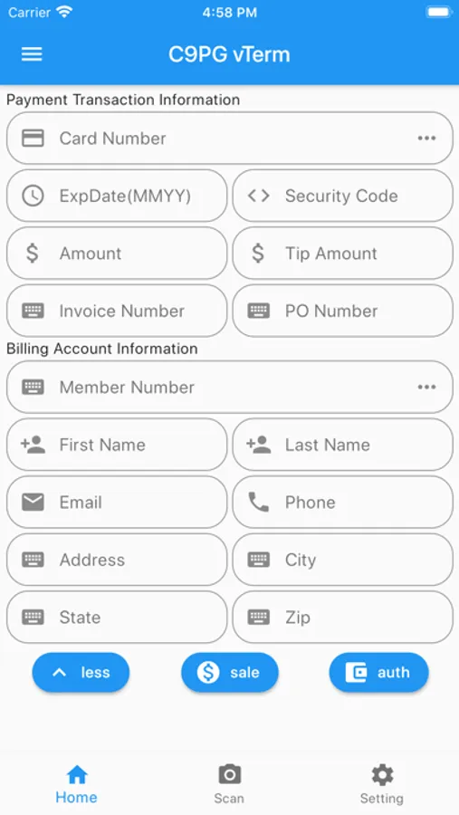 Virtual Payment Terminal for the processing of Credit Cards and Debit Cards, to be used with the Cloud9 Payment Gateway (C9PG) and PAYMUSE services