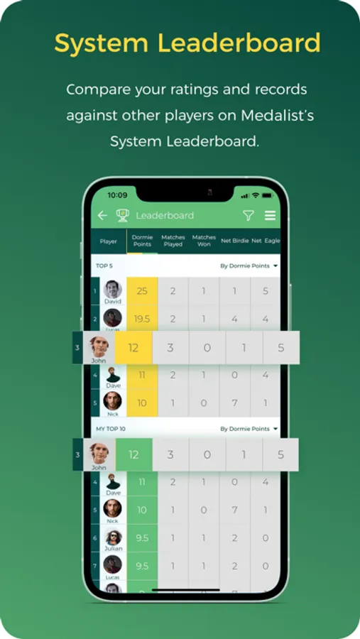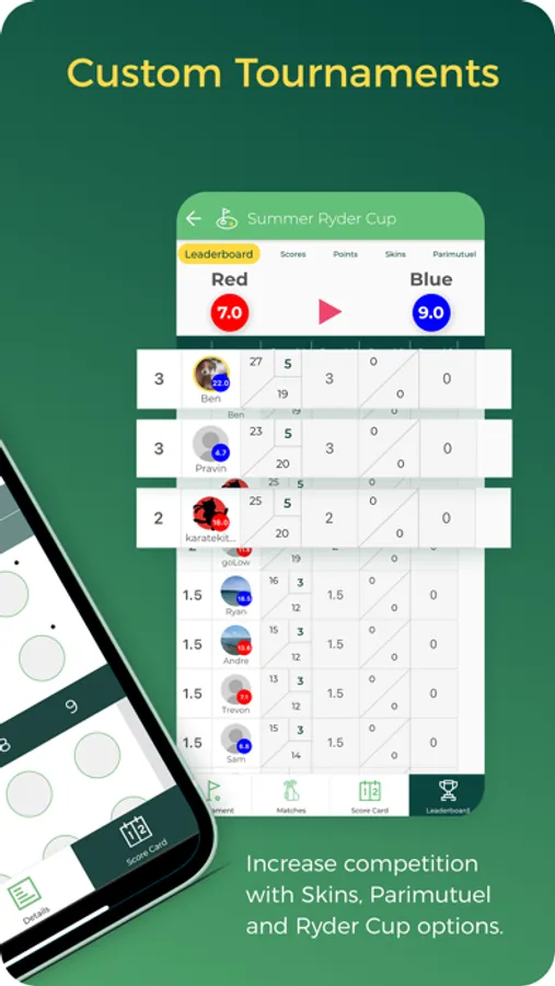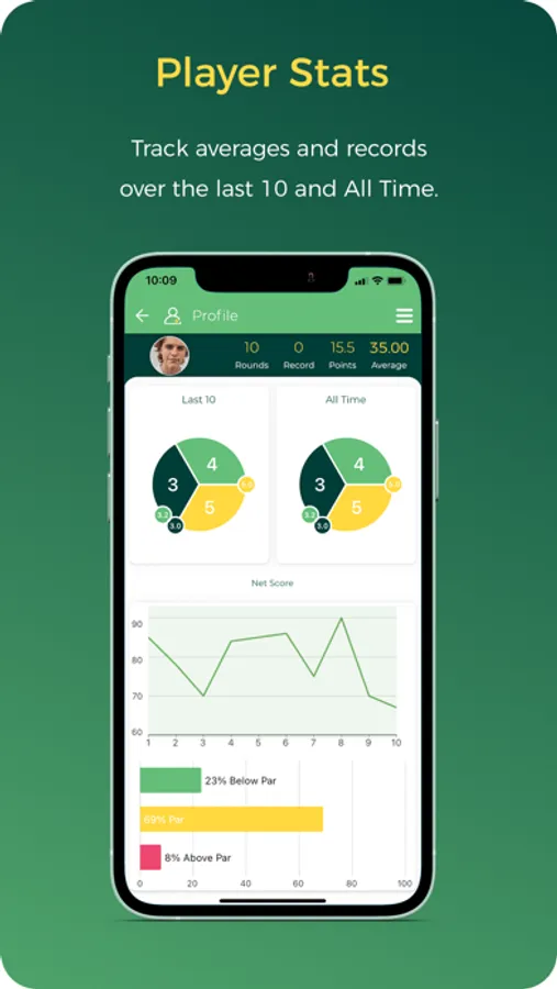 The only one of its kind...Medalist offers Live Leaderboards, real-time scoring alerts, customized match scoring, skins, parimutuel, Stableford, 2- and 4-team Ryder Cup setups and a bunch of match combinations. Need more? Stats! We track those too!