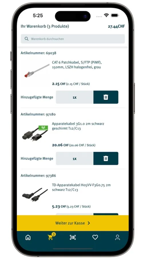 Mit unserer APP für iOS kannst du Bestellungen bequem unterwegs tätigen. Zudem kannst du mit der APP einfach Produkt-Barcodes scannen und die gewünschten Artikel in den Warenkorb legen. Bestell direkt über dein Handy oder speichere den Warenkorb als Bestellvorlage für eine spätere Bestellung an deinem Büroarbeitsplatz.