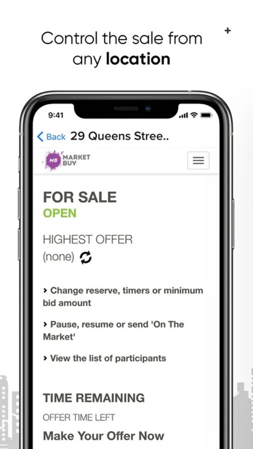 The Market Buy App is a listing & sales support tool for real estate agents. With it, agents have the power to manage the entire negotiation and sale process from their mobile phone or tablet, providing a significantly greater level of speed, communication, transparency and efficiency in the transaction.