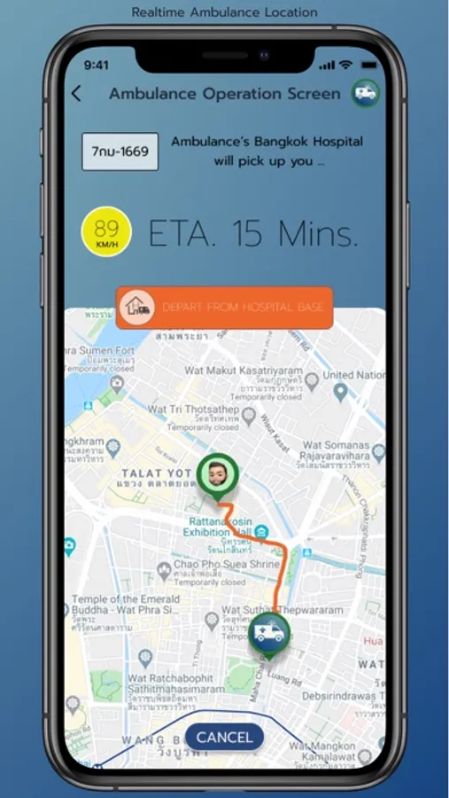 In an emergency, the patient or those close to them can request Emergency Medical Service via an application that’s linked to the AOC command and control center in each of the Thai provinces. This makes it possible for the ambulance to pinpoint the location of the patient and arrive at the scene in no time.