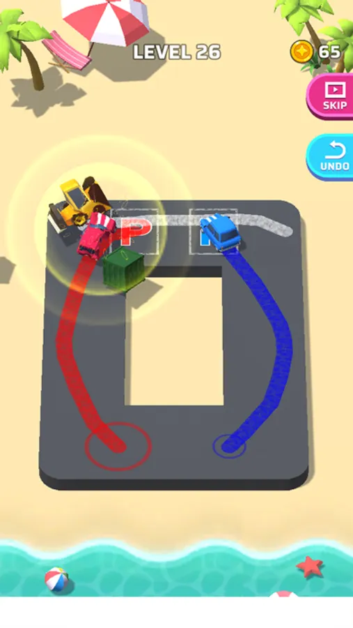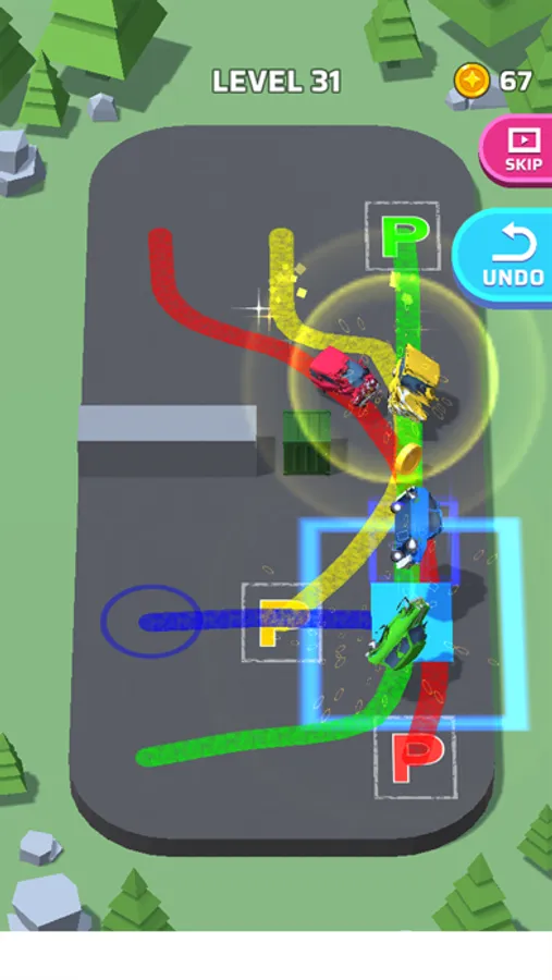 Draw a safe road to help your car to get to their spots safely! And Watch out! Do not let your car crash!
