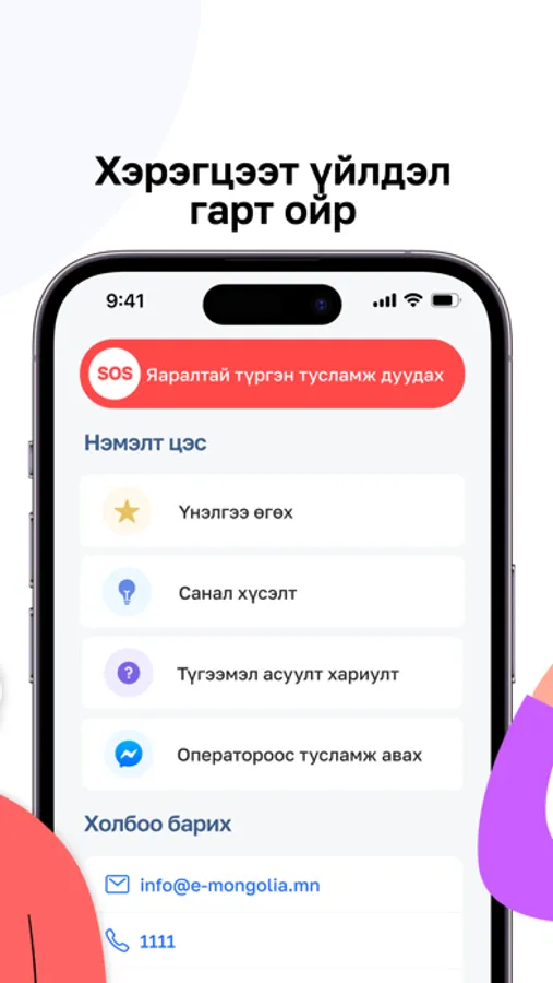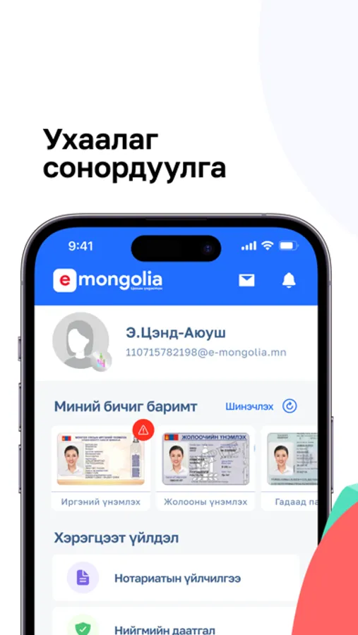 e-Mongolia is an integrated system to obtain services provided by the government regardless of space and time. The app was updated to include more flexible configuration options, such as hiding the user's profile picture and logging in with fingerprint (face) recognition technology, and increased accessibility solution.