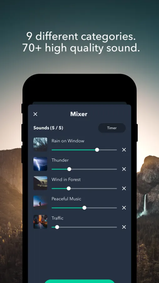 • 70+ high-quality relaxing sounds in 9 different categories, including nature, rain, wind & fire, noises, and ASMR