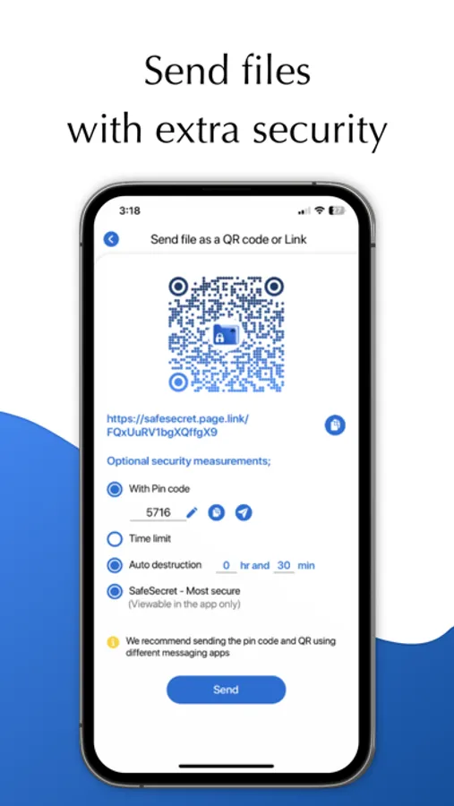 With "SafeSecret" you can securely save and share confidential, secret digital data: photos, videos audio, and documents with a PIN code.