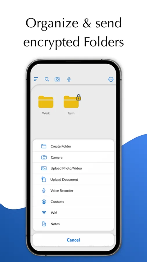 ⁃ Create Folders and encrypt them or share them as a Dynamic encrypted QR code. This means any change you will make in the folder will also be changed in the QR code you sent.