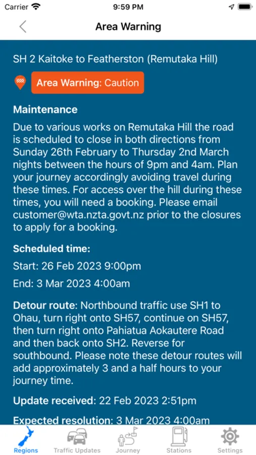 1. A list of current road closures, road works, area warnings and other incidents causing congestion or delays on New Zealand roads.