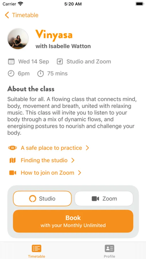 Book at-studio and online classes at OrangeYoga.