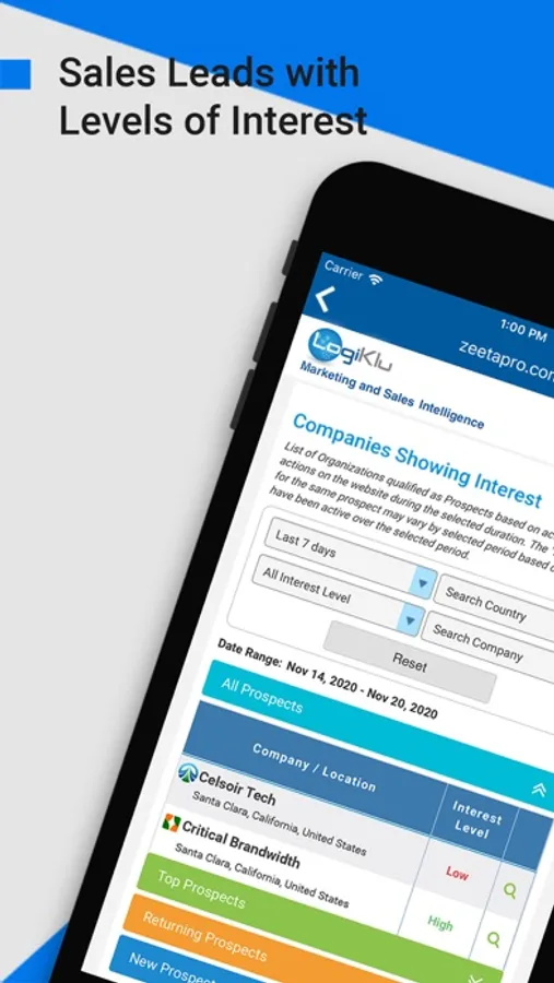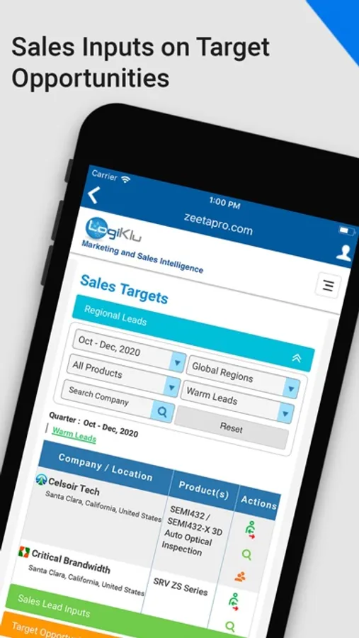 LogiKlu delivers marketing and sales intelligence including B2B Sales Leads for individual regions and products right on your mobile phone. It enables Salespersons to provide inputs on business opportunities conveniently with no dependency on organizational resources or infrastructure. Sales Management gets meaningful reports anytime, anywhere. Marketing Team gets valuable insights on individual product demand and marketing asset efficacy delivered to their mobile phone. LogiKlu provides flexibility, mobility and cost-efficiency.