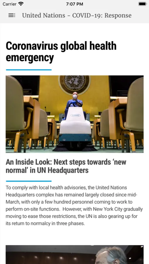 The United Nations COVID-19 Response app provides instant updates on the UN’s broad-ranging response to the COVID-19 pandemic. Information includes daily updates on the work that the UN is doing to tackle the pandemic worldwide, including campaigns, initiatives and events, along with practical guidance and information. Content is verified for accuracy and available in the six official languages of the UN (Arabic, Chinese, English, French, Russian and Spanish).