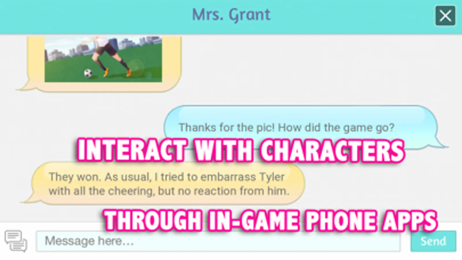 An otome game with four romance-able characters you can bond and interact with to unlock text messages, social media content, and romantic scenarios in the story!