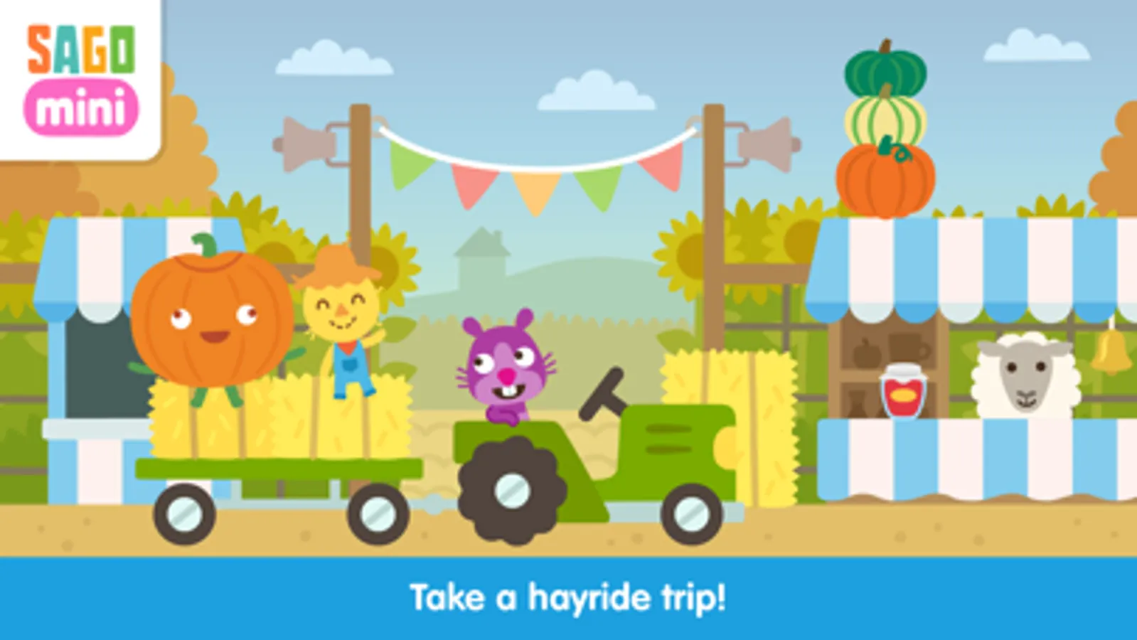 The fun fair is in town, and you’ve got a season pass! Join your Sago Mini pals as you try your luck at classic carnival games, take a spin on a fairground ride or take a hayride trip through the farm. Don’t forget to grab a snack — make your own wacky flavors with the ice cream machine or save some room for the pie-eating contest!