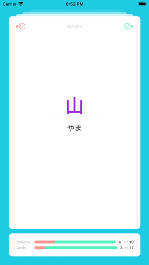 The user experience was inspired by the popular flashcard app Anki in the sense that it allows you to reveal the answer instead of having to typing it out, and it features a Tinder-like swipe gestures to quickly submit your answers. Just login with your WaniKani Personal Access Token and start swiping.