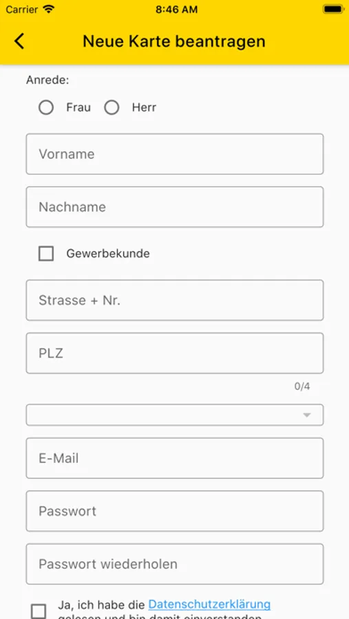 Nutzen Sie die App zum ersten Mal? Hinterlegen Sie Ihre Angaben einmalig.