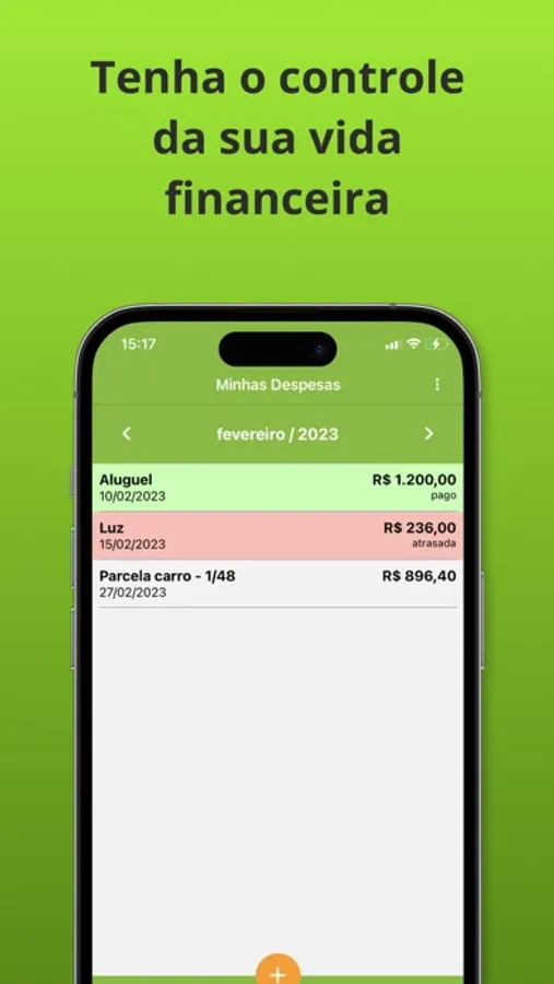 Initial Screen - is where the expenses of each month are listed. Lines with a yellow background indicate that the expense is late. Clicking on each expense opens the Detailing screen.