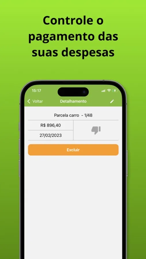 Detail Screen - displays the details of the expense. In this screen it is possible to carry out the expense reduction and it is also possible to carry out the exclusion of the expense (of all expenses, of the expenses of that month or only of the next ones). You can also request to edit the expense.