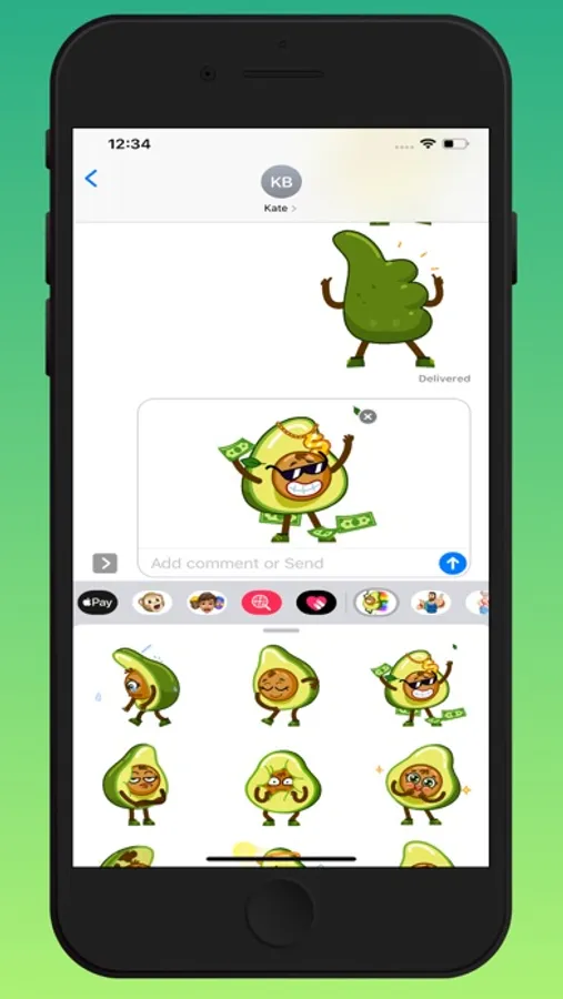 Animated stickers with funny avocado will add freshness and fun to the conversation. Don't be boring. Have fun and joke and laugh.)