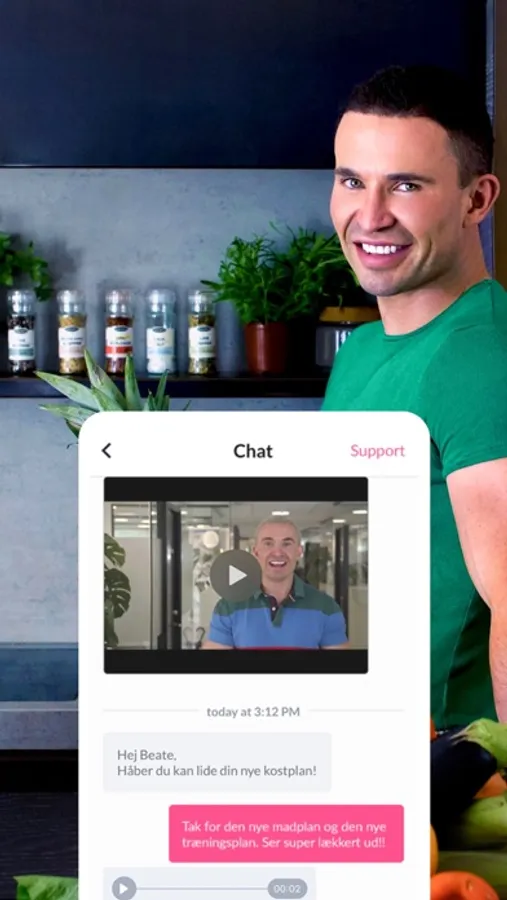 - Chatfunktion, hvor du løbende vil modtage tekst- lyd- og videobeskeder fra Fitness Nu team'et, og hvor vi løbende kan være i dialog vedr. dit forløb og sørge for, at du er motiveret til at komme i mål.