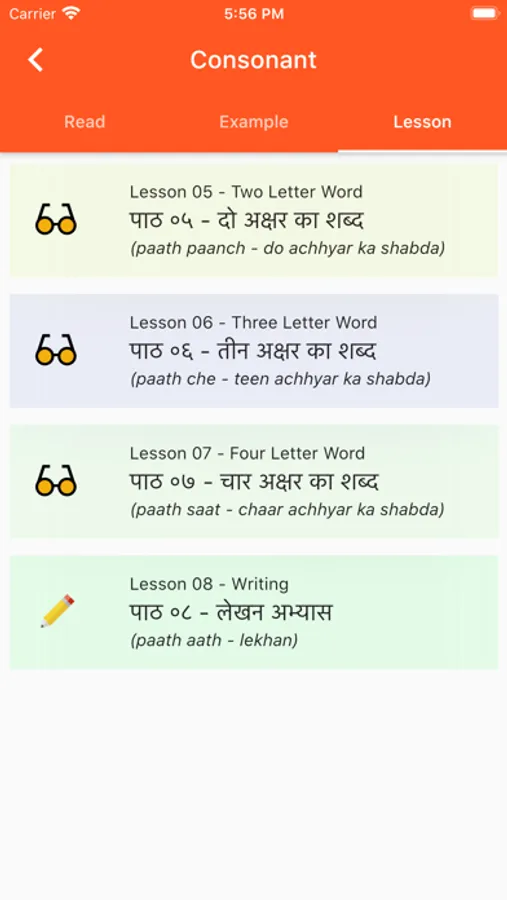 * Read, pronounce and write Hindi with vowels and consonants in Devanagari script.