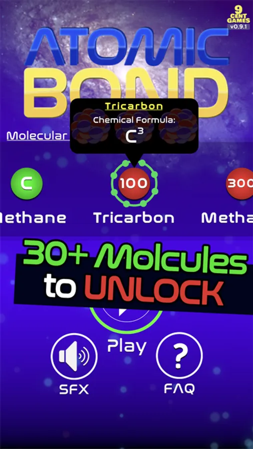 Collect all the elements required for 30 unique molecules such as Vitamin C, Dynamite, Glucose, Methane, and more! Learn a little bit of science along the way.