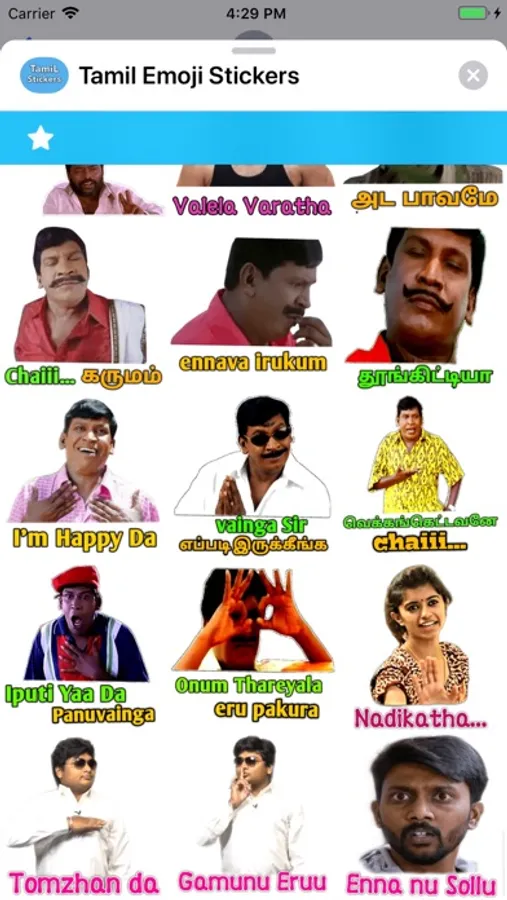 Do you want a great collection of Tamil emojis? What are you waiting for! Get "Tamil Emoji Stickers" app and impress your friends with these cool and funny Tamil stickers.
