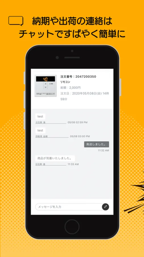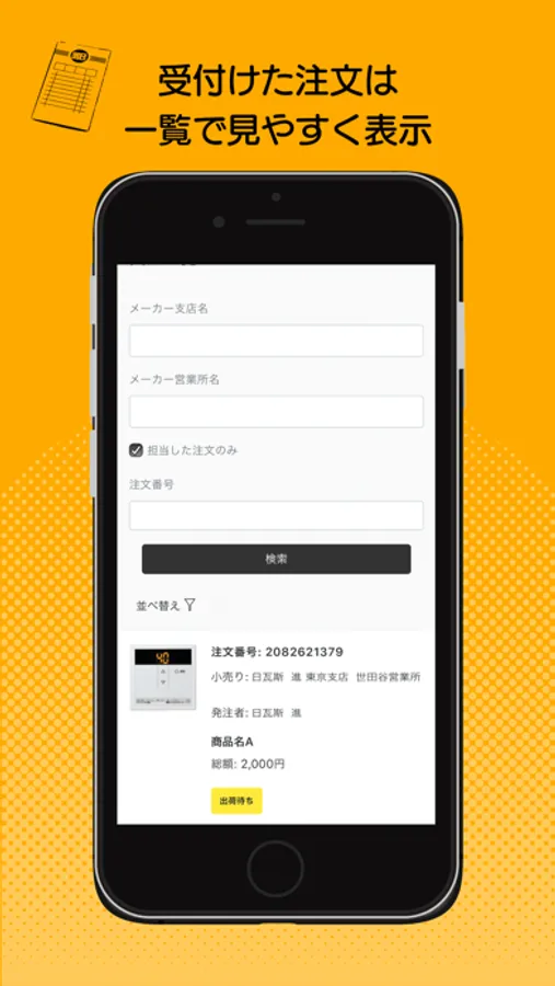 受発注に必要なデータをアプリ上に事前登録すれば、現場での受発注が可能になり、全ての受発注業務をアプリで完結できます。