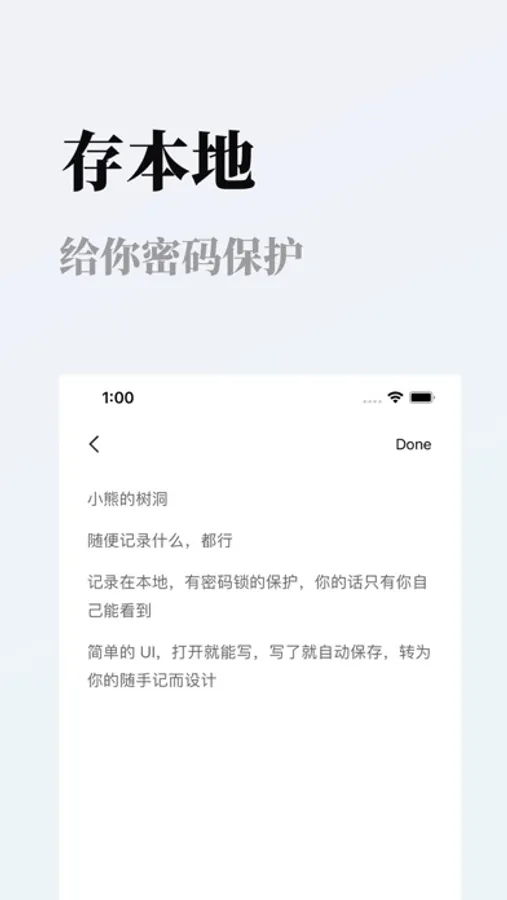 1. 完全本地存储,没有上传到网络上,你的树洞只有你知道。所以删除的时候,也请再三考虑哦。