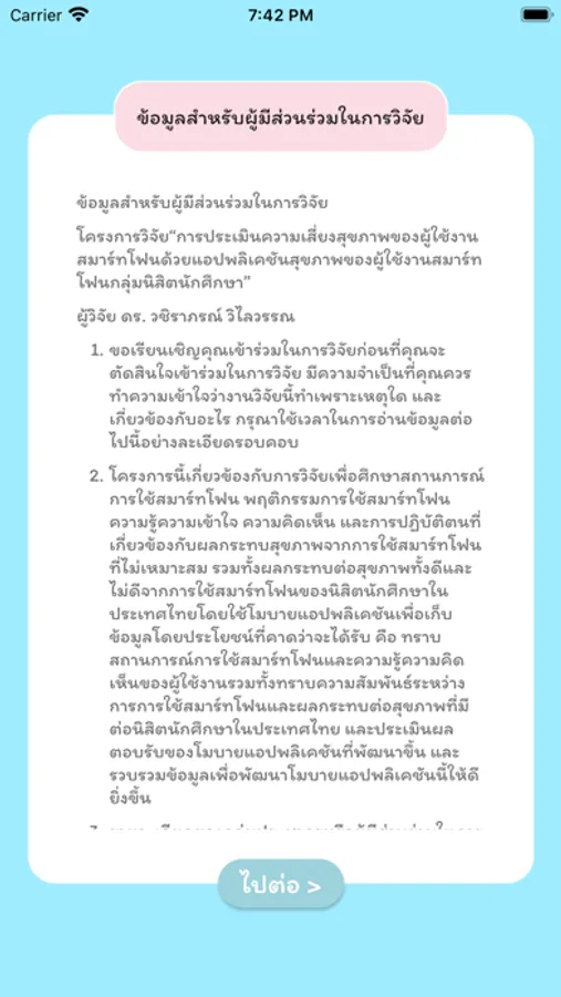 โปรแกรม SmartUHealth พัฒนาขึ้นภายใต้งานวิจัยเรื่อง “การประเมินความเสี่ยงสุขภาพของผู้ใช้งานสมาร์ทโฟนด้วยแอปพลิเคชันสุขภาพของผู้ใช้งานสมาร์ทโฟนกลุ่มนิสิตนักศึกษา” (GCURS_59_06_79_01) โดยจุฬาลงกรณ์มหาวิทยาลัยและศูนย์ข้อมูลงานวิจัยด้านการวิเคราะห์ความเสี่ยงและการเฝ้าระวังผลกระทบสุขภาพในคนไทยที่วิทยาลัยวิทยาศาสตร์สาธารณสุข จุฬาลงกรณ์มหาวิทยาลัย (http://www.c-rahs.org) แอปพลิเคชันนี้ผู้ใช้สามารถประเมินความเสี่ยงสุขภาพจากการใช้งานสมาร์ทโฟนได้ด้วยตนเอง รวมถึงการประเมินความรู้ ทัศนคติและการปฏิบัติตนเกี่ยวกับผลกระทบด้านสุขภาพจากการใช้งานสมาร์ทโฟน และหลังจากตอบแบบประเมินในแอปพลิเคชันเรียบร้อยแล้ว แล้วผู้ใช้จะได้รับผลการประเมินและคำแนะนำเพื่อลดความเสี่ยงสุขภาพที่เกิดการจากใช้งานสมาร์ทโฟน