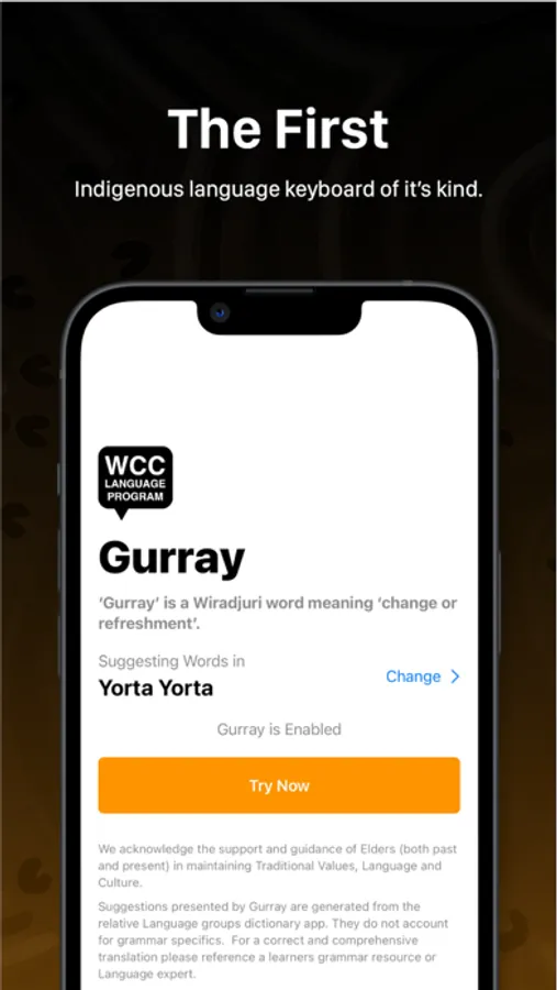 Gurray is a Wiradjuri word meaning change or refreshment and is the world's first language keyboard of its kind.