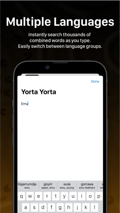 Swipe sideways at the top of the keyboard to find a word you are looking for, then simply tap to replace the English word with Indigenous language.