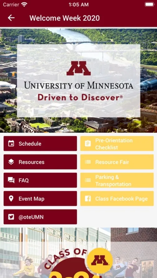 The official app of the Orientation & Transition Experiences Office at the University of Minnesota. Use this app to view OTE programming including Orientation schedules, Welcome Week resources, and more.