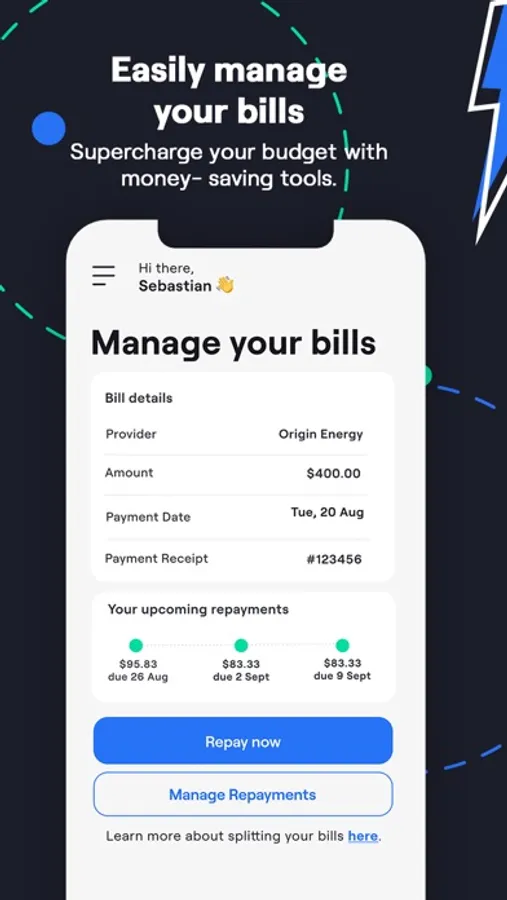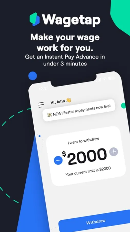 With Wagetap you can access your pay on demand instantly and cash out up to $2000 within just a couple of minutes. We’re also one of the best bill splitting apps, enabling you to split your bill payments into smaller repayments and pay over time.