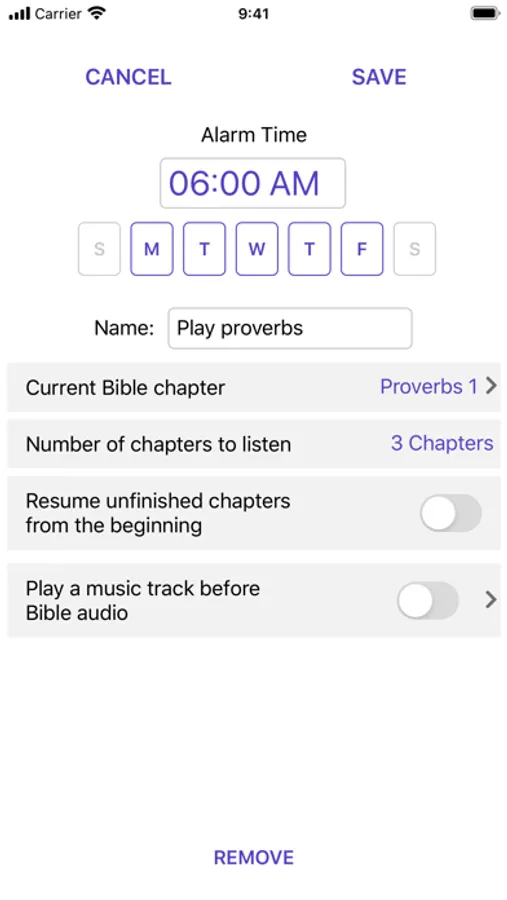 An app to do a scheduled audio reading of the Bible (New World Translation).