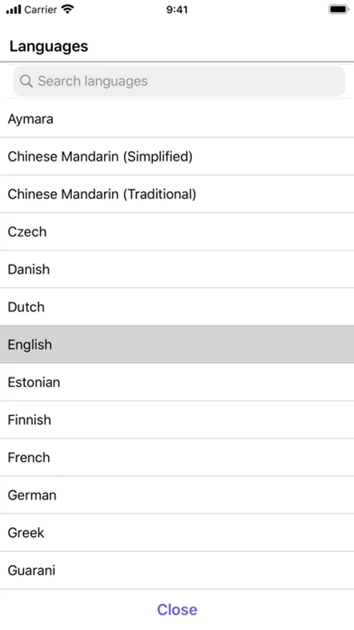 Bible audio is available partially or fully in following languages. Albanian, Armenian, Aymara, Bengali, Chinese Mandarin (Simplified & Traditional), Czech, Danish, Dutch, English, Estonian, Finnish, French, Georgian, German, Greek, Guarani, Gujarati, Gun, Hindi, Hungarian, Indonesian, Isoko, Italian, Japanese, Kannada, Kazakh, Korean, Malagasy, Malayalam, Marathi, Maya, Myanmar, Norwegian, Polish, Portuguese (Brazil, Portugal), Punjabi, Quenchua (Ancash, Ayacucho, Cuzco), Romanian, Russian, Shona, Sinhala, Slovak, Spanish, Swedish, Tagalog, Tamil, Tatar, Telugu, Tzotzil, Ukrainian, Yoruba.